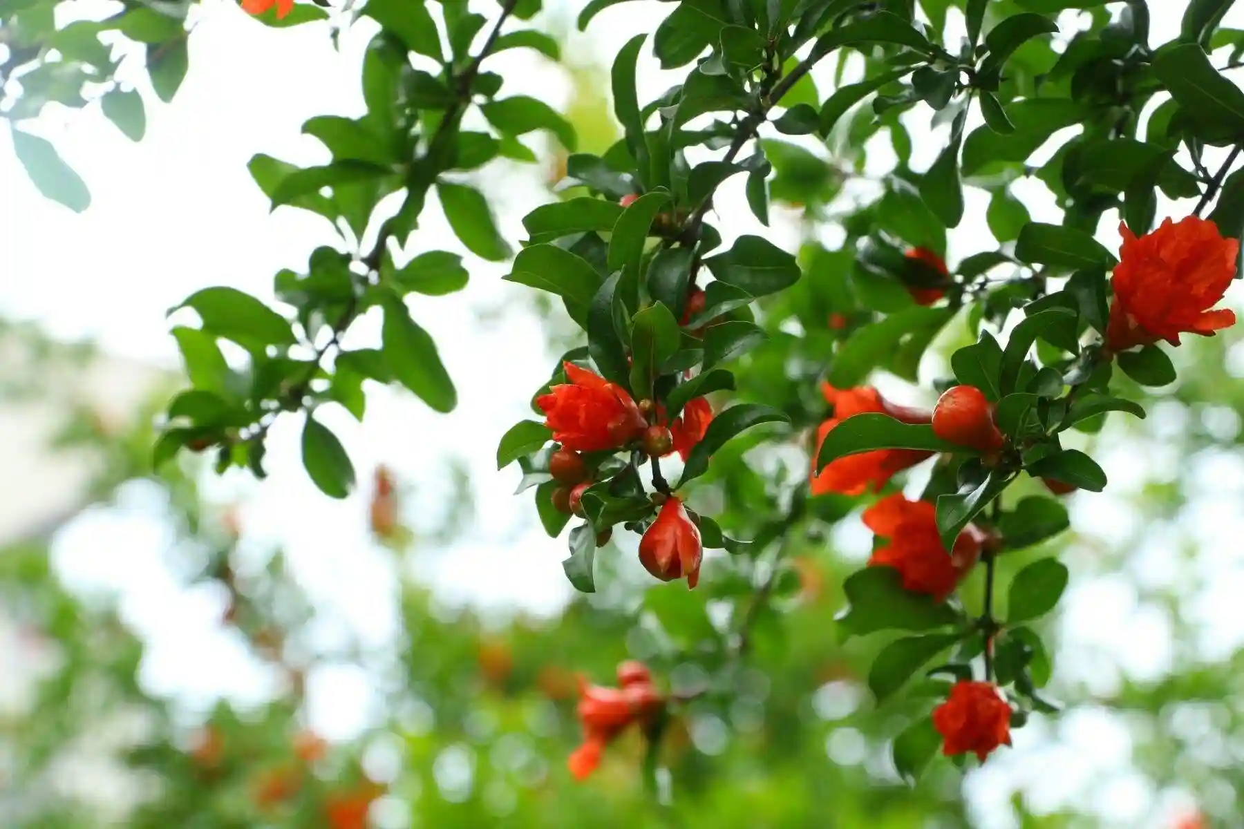 石榴树不仅可以养成大气美观别致的盆景,种植在庭院中心,花红叶绿,繁茂美观,结出来的果子,更是喜庆好看,果实美味。