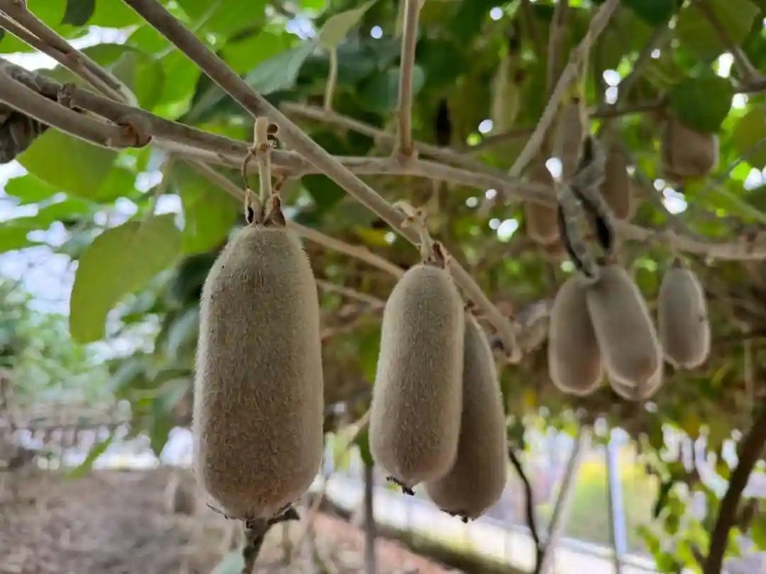 野生猕猴桃的藤条、叶片与其他猕猴桃没有很大区别,但果实区别就大了,外观呈圆柱形,果面长满了又密又厚的白绒毛,像披着一件白色棉袄。