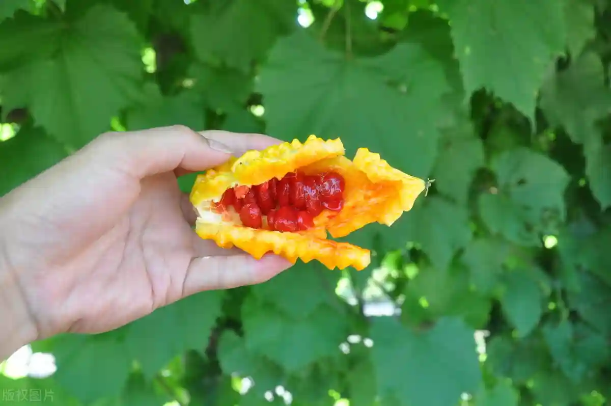 不是荔枝却叫做“荔枝”的金铃子;过去水果资源匮乏,农村有一种常见的水果,由于外皮疙疙瘩瘩很像癞蛤蟆,所以就被大家叫做赖葡萄。学名叫做金铃子,是一种苦瓜属爬藤植物,有的地方还把它叫做荔枝,明明跟荔枝没有丝毫关系,不知道为啥名字却被叫做荔枝。金铃子呈纺锤状,个头比苦瓜小很多。成熟之前是青绿色,成熟之后的金铃子颜色橙黄靓丽,具有很好的观赏性。金铃子能够使用的部分,是果实籽粒上面的厚厚粘膜。