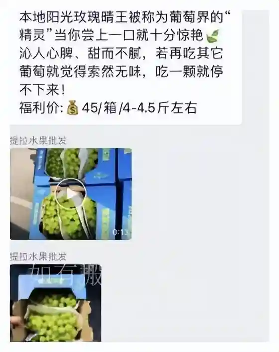 在小区水果团购群里,老板宣称本地阳光玫瑰晴王葡萄,以福利价45元一箱的价格售卖,而且每箱葡萄的重量在4到4.5斤之间。然而,陈女士购买的这一箱葡萄却让她大失所望,实际重量只有3斤左右,而且包装本身却占去了1.5斤的重量。更为令人不解的是,陈女士在店里购买的同等规格的本地阳光玫瑰葡萄,每斤只需9.9元,而她却花了15元购买了一箱实际只有3斤葡萄的产品。陈女士找到商家理论,商家的解释却让人难以接受:“净重肯定只有3斤了,毛重在4斤左右呀。”