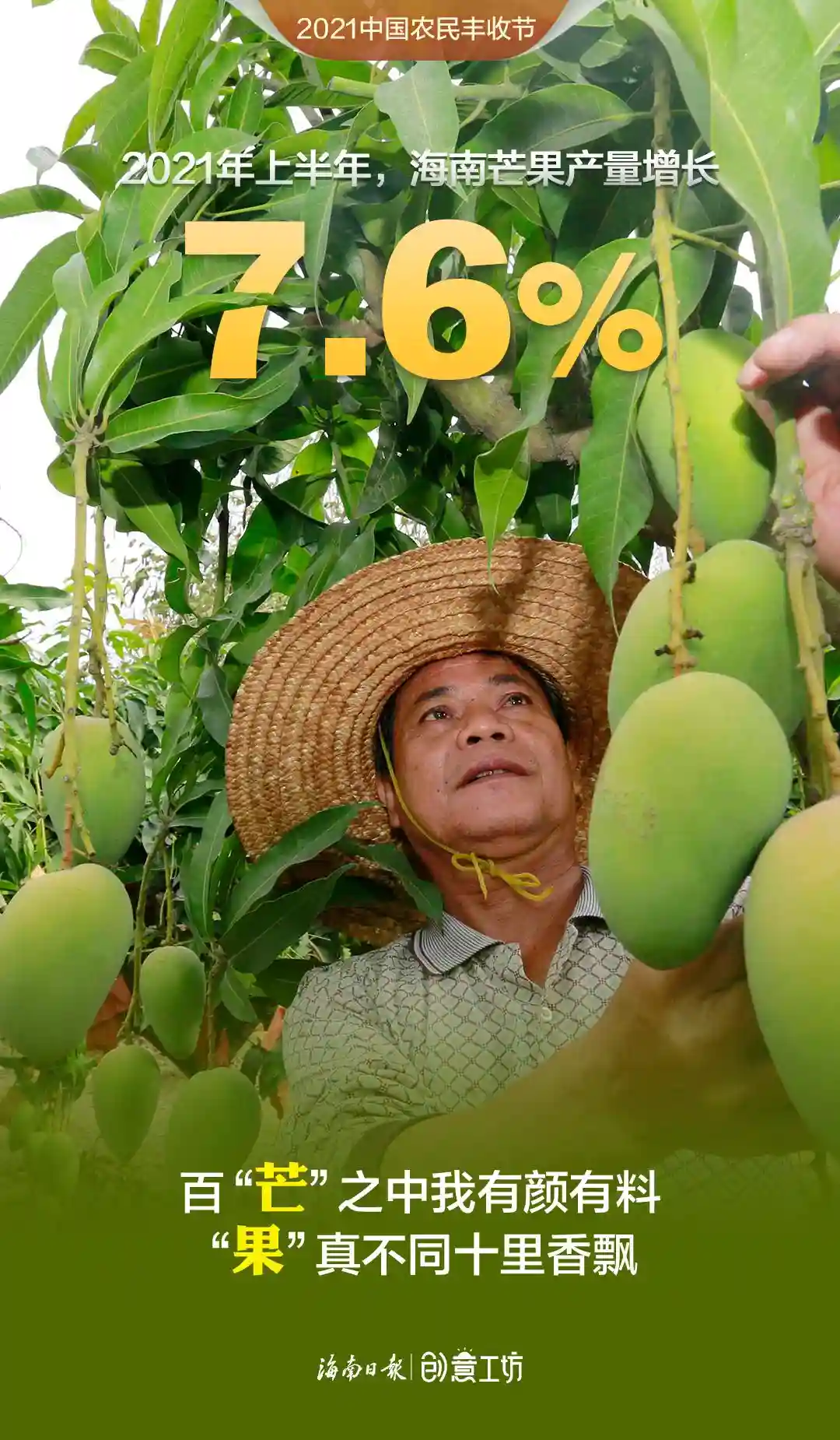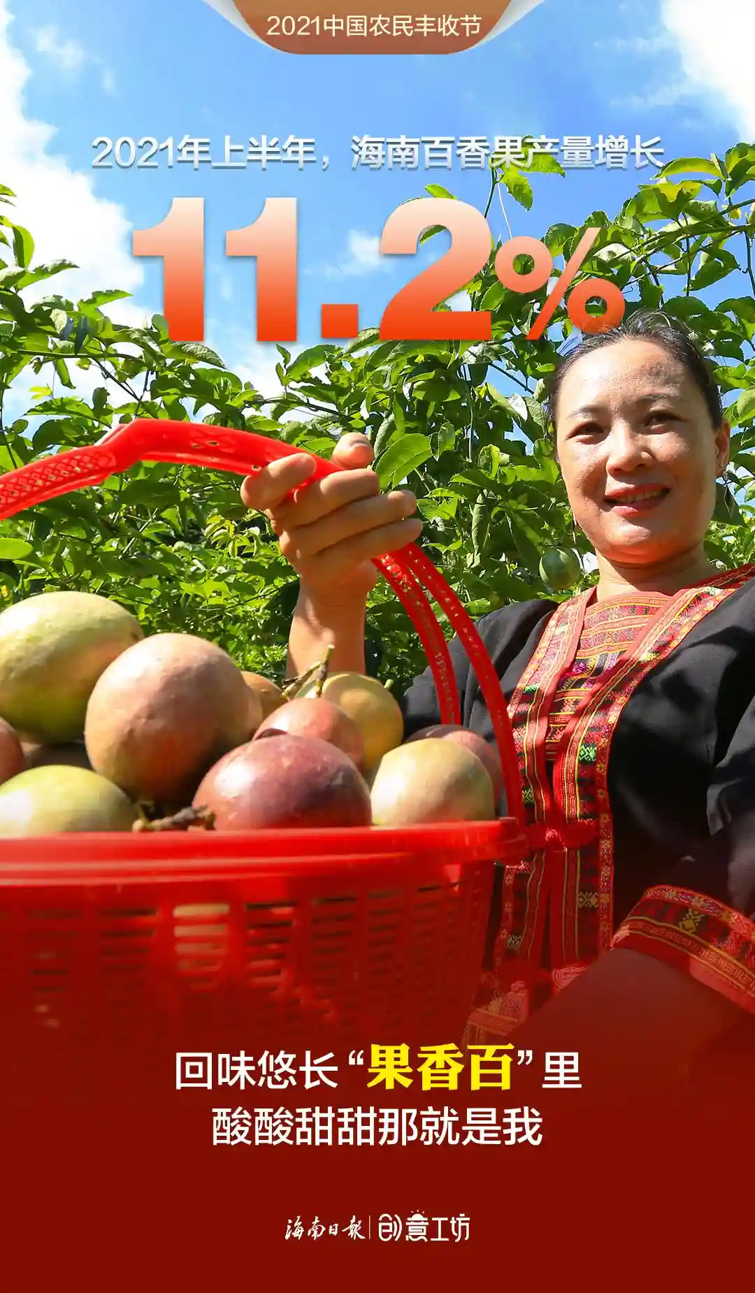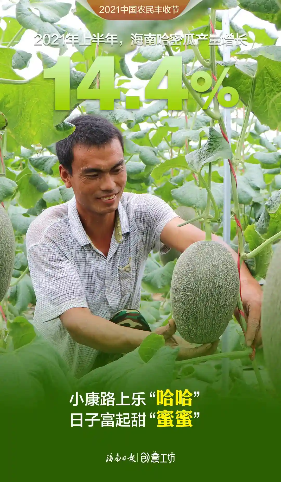 2021年上半年,海南蔬菜、水果再获丰收,蔬菜产量419.55万吨,水果总产量386.22万吨,相比2020年上半年分别增长4.8%、6.9%,哈密瓜、火龙果、莲雾、百香果等优势水果步入收获期,有力助推种植业增长。在第四个中国农民丰收节来临之际,伴随着海南田间地头丰收的喜悦,新媒体中心制作了一组令人“垂涎”的创意海报《水果话丰收》,这些有颜有料的水果个个自信满满、魅力无限,快看看“她们”有什么话要对你说!