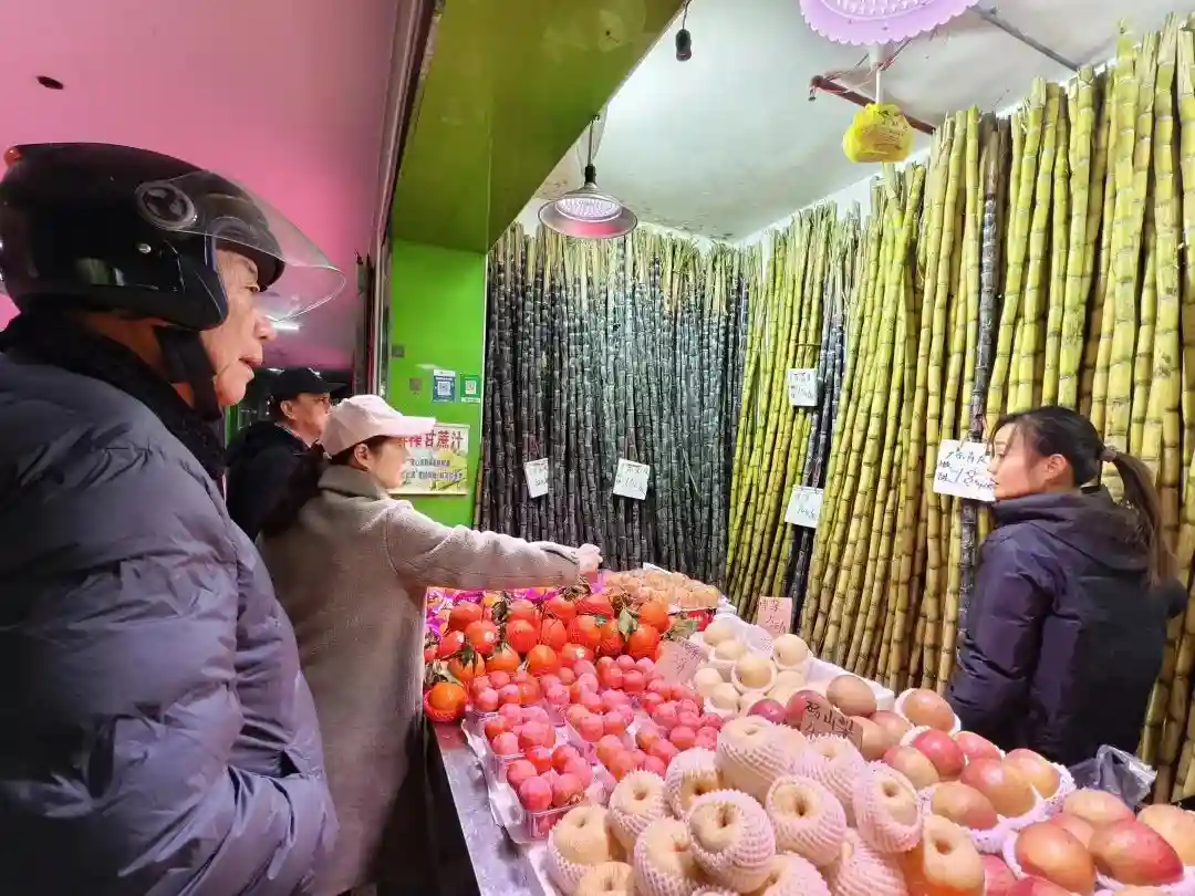 在这里卖水果10多年的摊主介绍:“今年价格与往年差不多,相对比较稳定。近段时间来买的居民较多,等到春节后有可能价钱还会便宜点。”