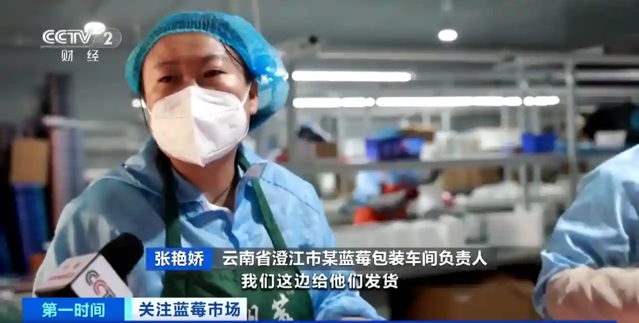 云南省澄江市某蓝莓包装车间负责人张艳娇:消费者在网上订购,我们这边给他们发货,一天1000多单,多的时候2000多单。