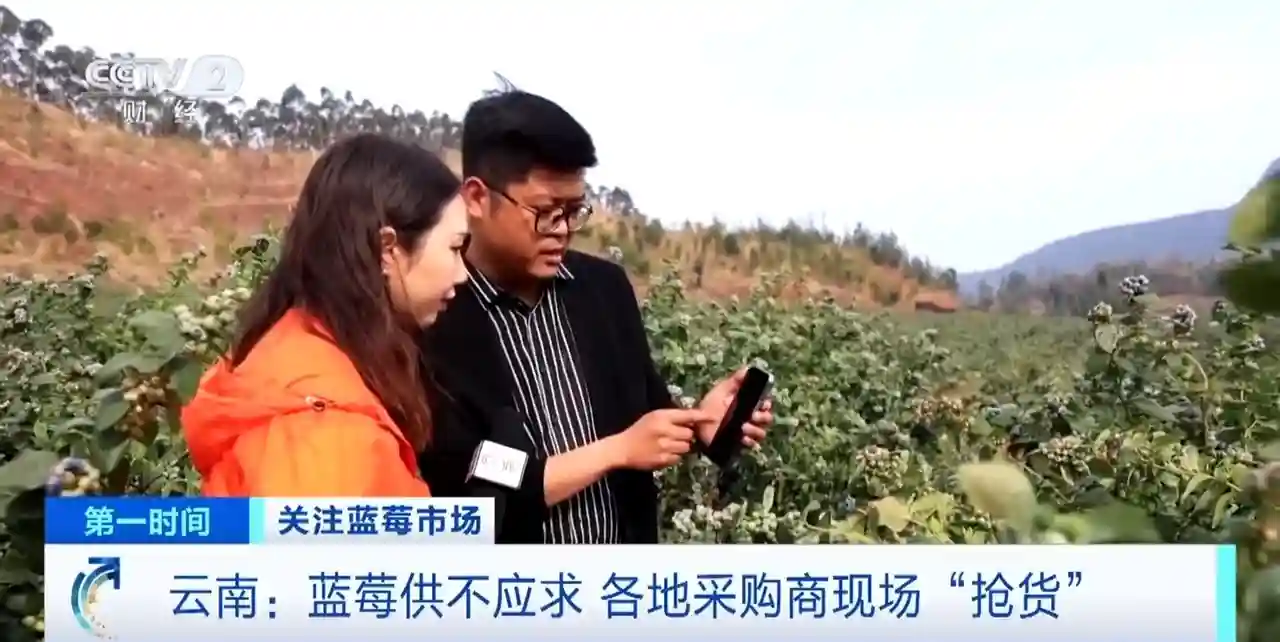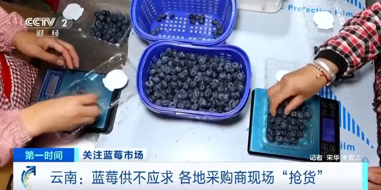记者走访云南蓝莓产地发现,今年蓝莓果实成熟较早,全国各地的采购商纷纷赶来订货,甚至还出现“抢货”的现象。