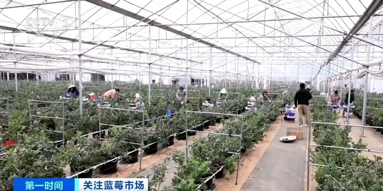总台央视记者宋华:现在正是国内蓝莓上市的早期,我所在的这个蓝莓基地,15个工人正在采摘蓝莓,他们要从早上7点半一直忙到晚上6点。