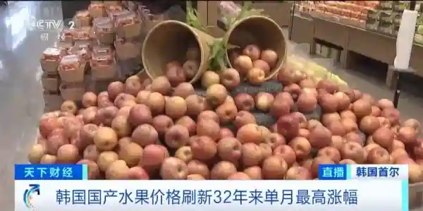 财经频道特约记者刘峥介绍:最近韩国民众逛超市有个共同感受,就是水果太贵了。以这袋苹果为例,一袋6个,售价16800韩元,算下来每个苹果约合人民币15元。6日韩国统计厅发布数据,在石油类、水果类等品目价格的拉动下,韩国2月消费者物价涨幅升至3%以上,水果的涨幅高达41.2%,创下自1991年9月以来的单月最高值。