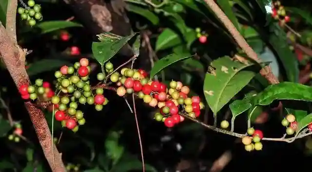 这些果子比较小,但是数量却很多,成熟后的酸藤子长得红红的,十分漂亮。一颗又一颗如樱桃般的果实长于枝叶中间。那成熟后的酸藤子,看着好像很好吃的样子,但是等吃到嘴巴里后却发现又酸又涩。小时候我们会把那个果子摘下来放到竹筒里面,做当弹弓玩十分有趣。你们也别小瞧这种果子,看着小小的,但是味道还是真的不敢恭维。