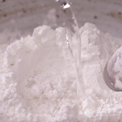 1、糯米粉、玉米淀粉中分次加入温水,搅拌均匀,揉搓成糯米团,静置10分钟左右;