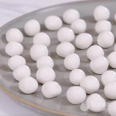 2、将糯米团搓成均匀的长条,揪成一个个小剂子,取两个剂子放在两手的掌心,对搓成大小均匀的小圆子;