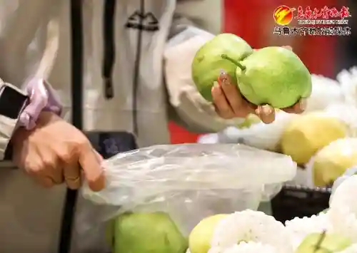 红山MALL购物中心的友好超市,消费者正在选购早熟梨。(9月3日摄)