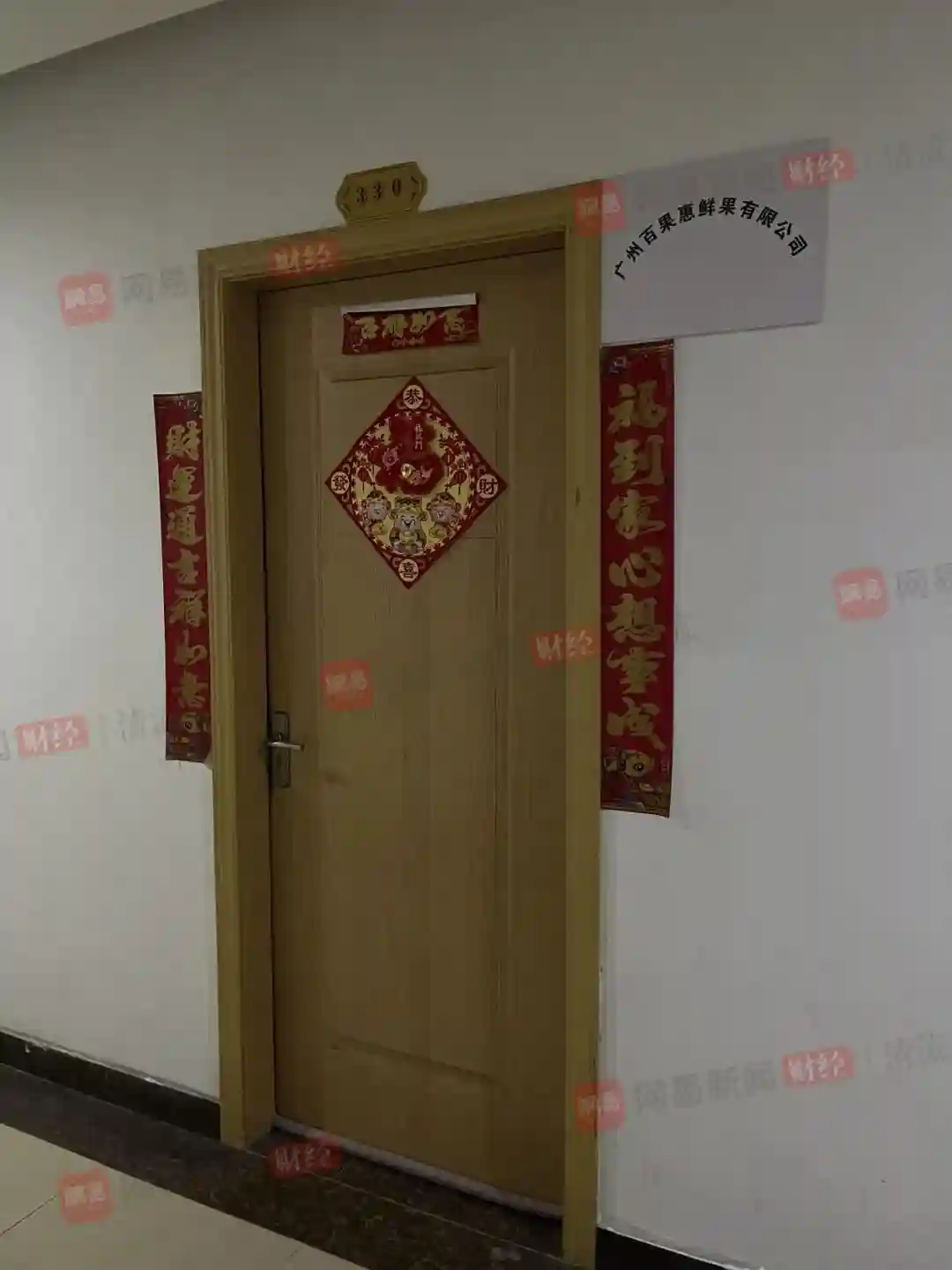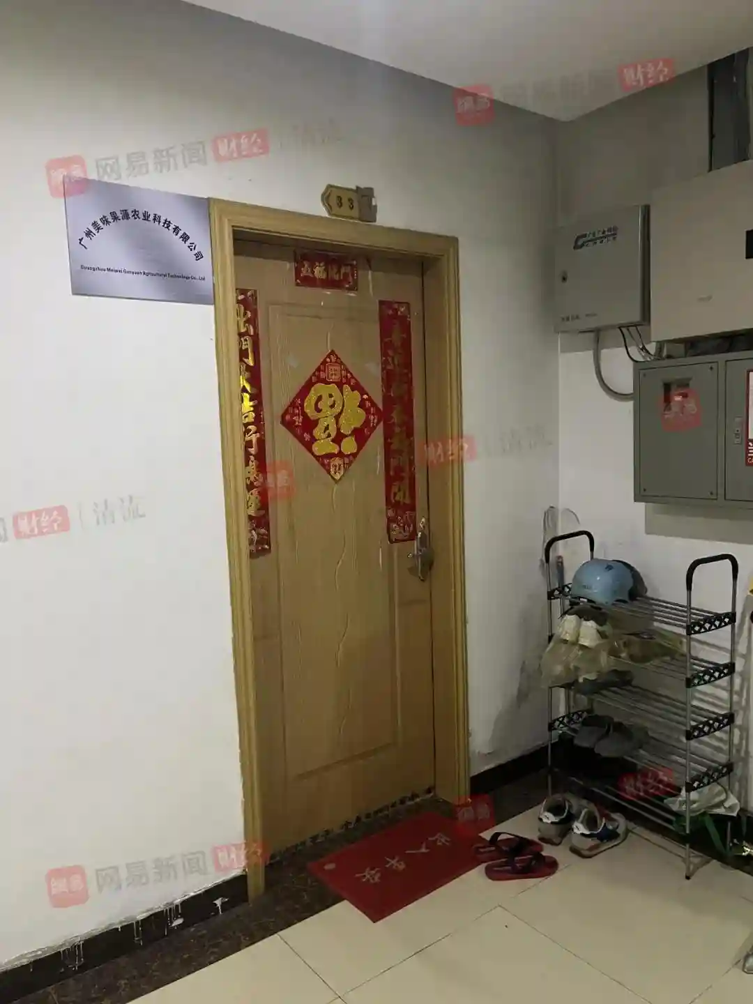 更奇怪的是,洪九果品广州分公司的应收账款债务人中,有三家客户与其注册于同一地址同一楼层的不同房间。如,客户广州美味果源农业科技有限公司、广州市果炫商贸有限公司、广州百果惠鲜果有限公司分别注册于337号房、331号房及330房间,距离广州分公司的308号房仅几步之遥。这些客户的注册地同样无人应答,门口堆放着鞋柜、衣架和头盔等生活用品。
