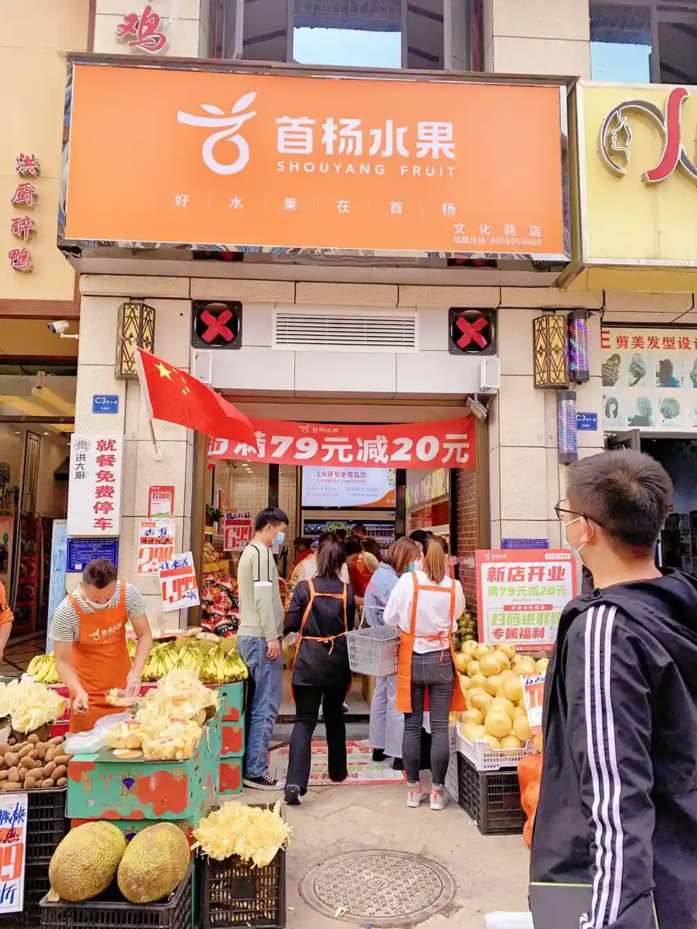 在贵州,水果店近年来的发展可谓是十分迅猛,前景市场十分可观。除了一些头部品牌,本土的一些强劲势力品牌也不容易小觑。首杨水果2013年在贵阳成立,与百果园不同的是,首杨水果做直营起家,每一家店都是精心打造的精品店,在贵阳很多还是地摊、夫妻店的时候,首杨水果逐渐地开始引入进口水果,让大家对水果的品质和种类认知都有了一定的提升。虽说首杨水果的规模还远不及百果园,但在贵州特别是贵阳来说,首杨水果的品牌认知度和市场占有率都是远高于百果园和一些新兴的品牌的,而这也是首杨水果开放加盟后的一大优势。