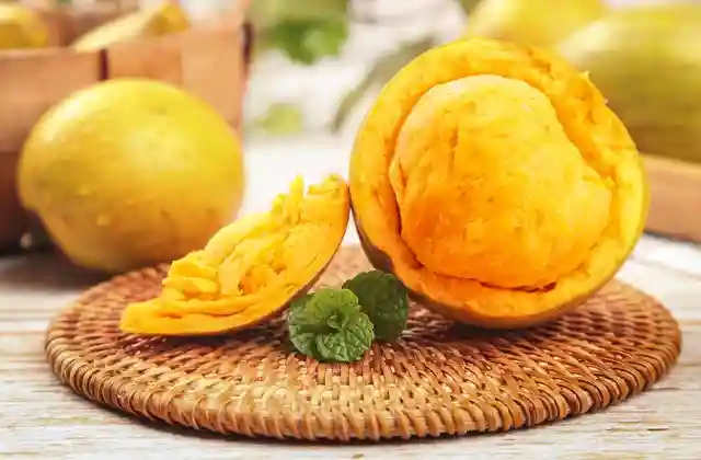 •蛋黄果:蛋黄果色泽金黄,个头有点像鸡蛋,切开后里面是金黄色的果肉,跟蛋黄的色泽相似,故此得名。蛋黄果价格可比鸡蛋贵多了,吃在嘴里有点像吃烤红薯,又有点像是在吃烤蛋黄,甜度不是很足,总之很难吃。