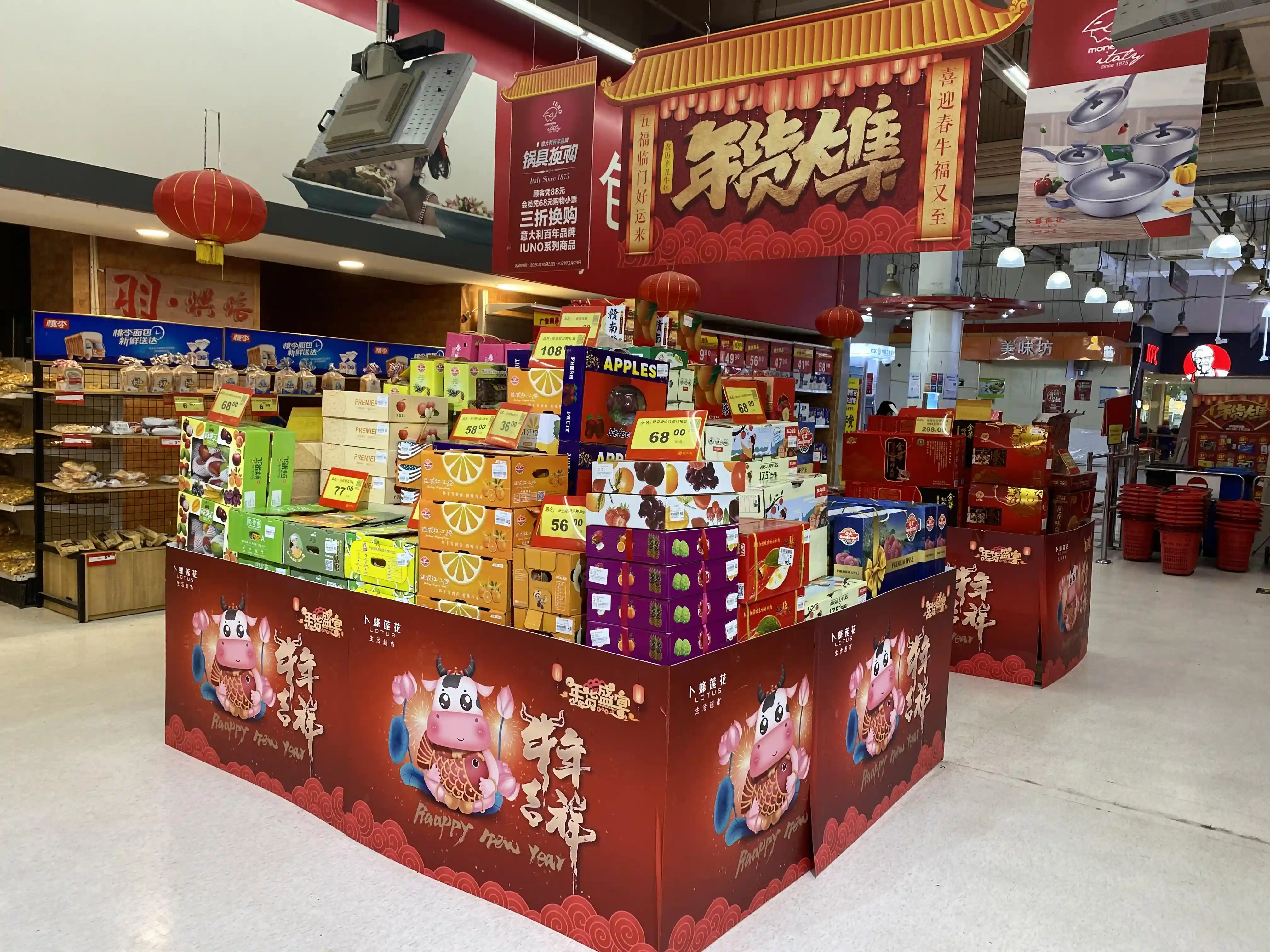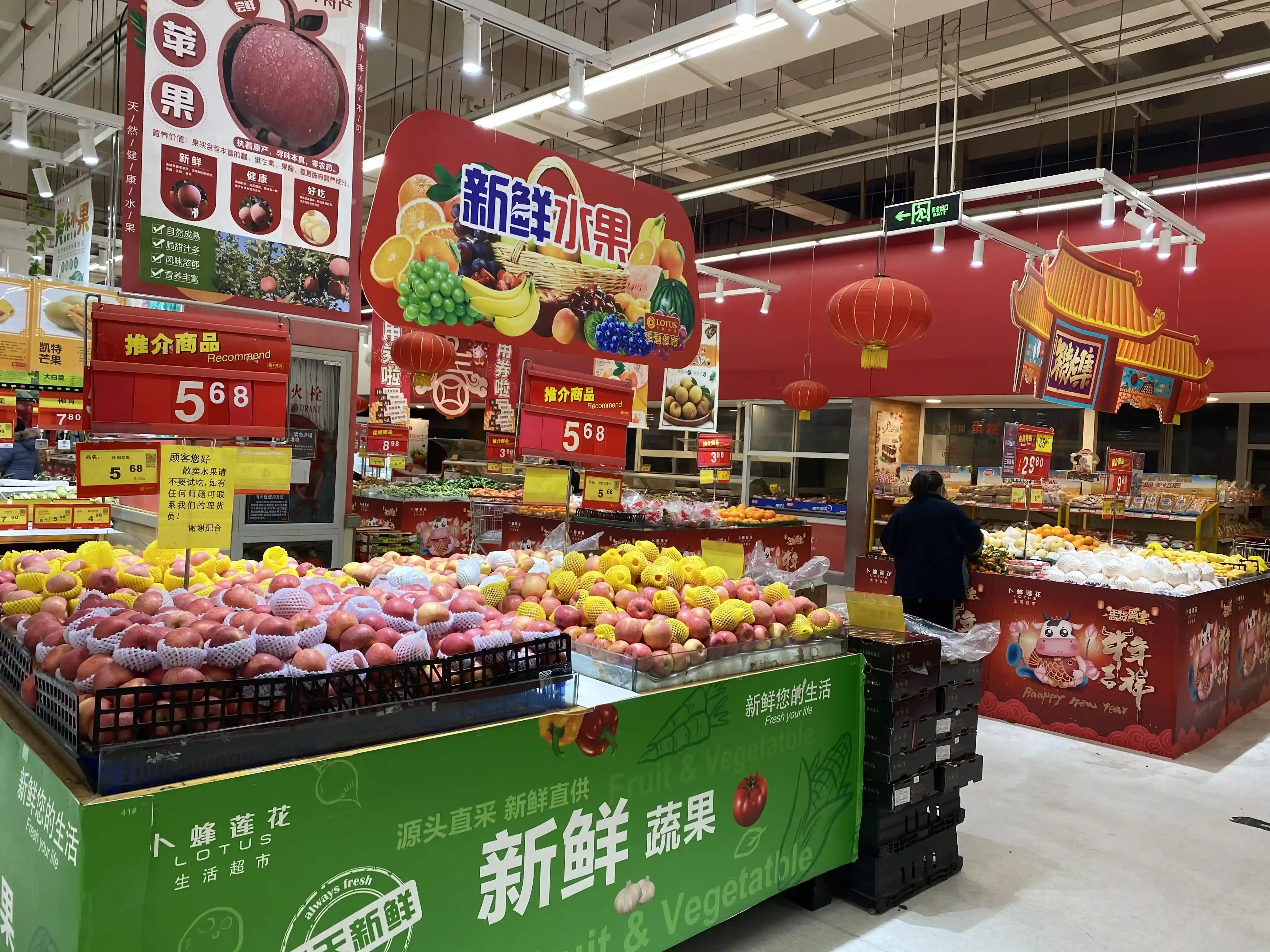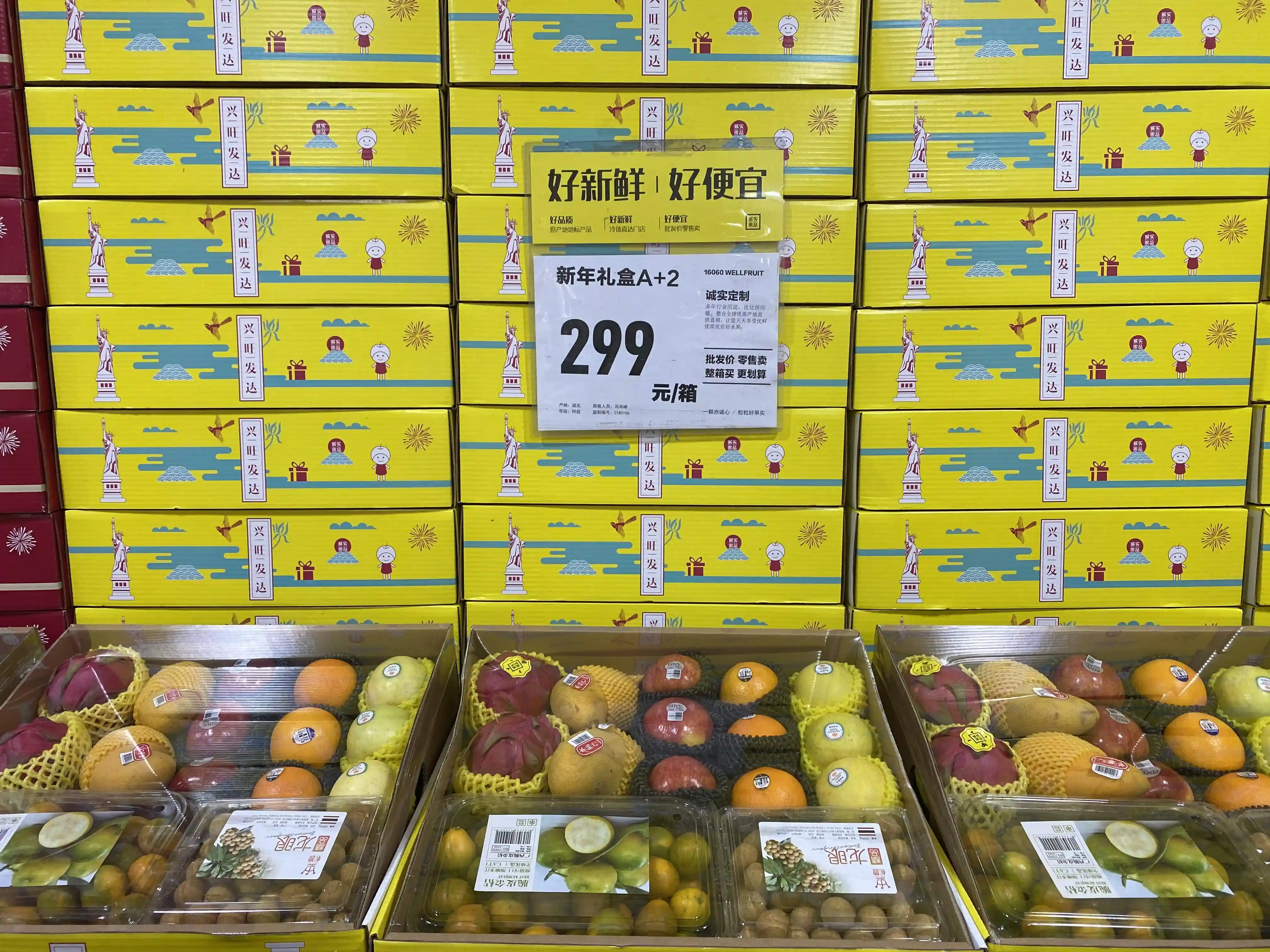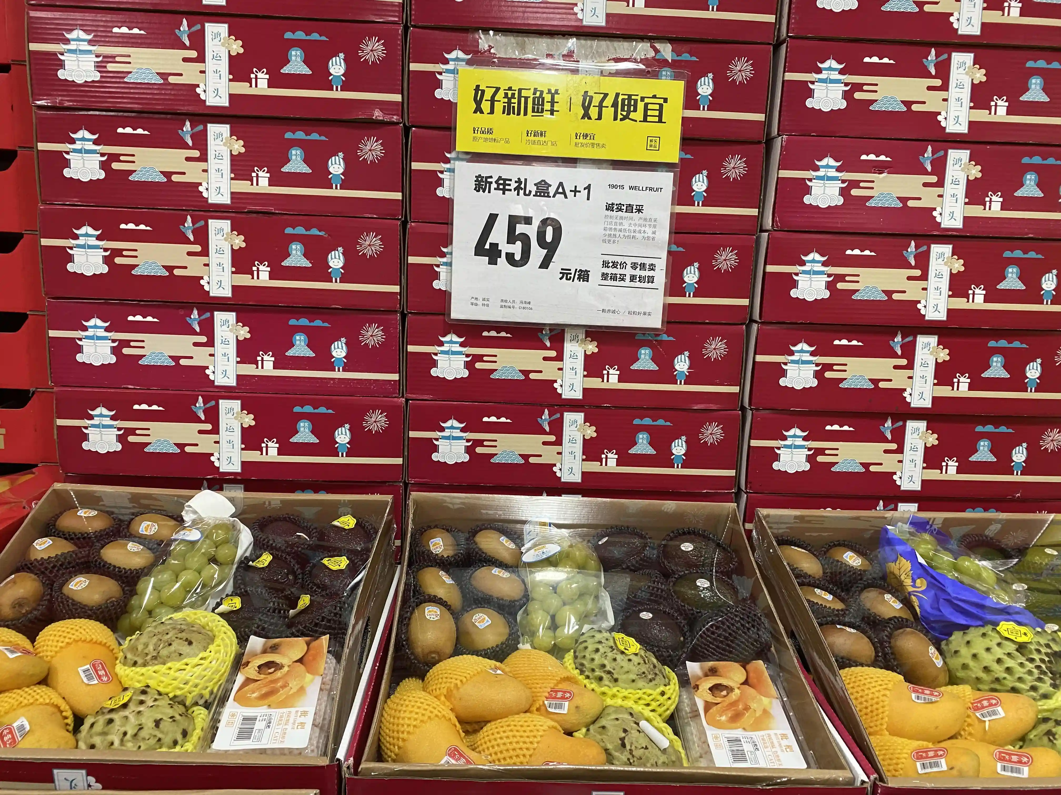 在卜蜂莲花南奉店一楼生鲜区,无论是散装还是礼盒水果货源都很充足,绝大多数消费者都是随吃随买。店长潘海红表示,目前每日的生鲜水果销量比较稳定,不过随着春节的临近,礼盒类的销量占比还是有所上升。