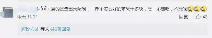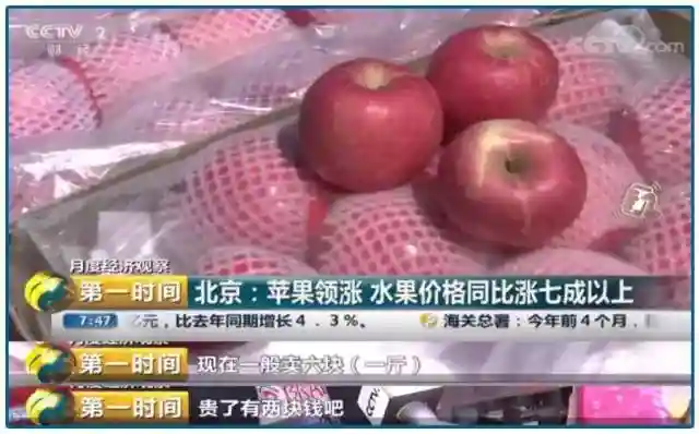 甚至连“朴实无华”的苹果也涨价了,“8块一斤,你敢信?”、“三个苹果都快三十几了”: