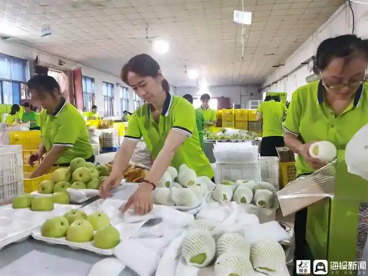 摘下熟果、精心选果……一个个梨果从被摘下到进入运输环节,经过了严格的筛选,不达标的果品是不允许出售的。村民开玩笑说:“没有一个坏梨能‘走’出冠县。”冠县刘屯村的黄金梨、丰水梨经过精选,很快就能进入东南亚等地的商超内。