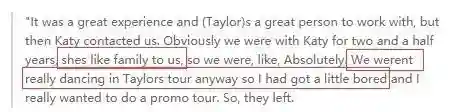 这场泪流满面的和好大戏,从去年就开始有小火苗了。霉霉在最近的媒体采访中提到了当时的心境