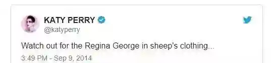 这条采访出街不到半小时,水果姐就在推特上公开回应霉霉的暗讽。“小心披着羊皮的贱女孩ReginaGeorge……”
