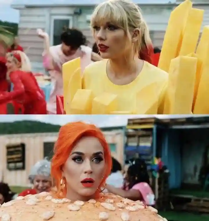 本身这首歌就是非常古怪有趣,霉霉想用汉堡和薯条的造型来隐喻两个人的绝妙关系,也得到了Katy的默契欢呼。不仅是一场温暖的合体,过程都充满了有爱的默契呢