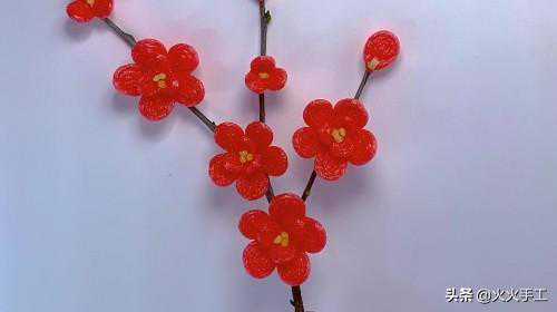 6.用红色的水果网做的一束红梅,算是冬天雪地里最鲜艳的一抹红了。颇有种“踏雪寻梅”的感觉。