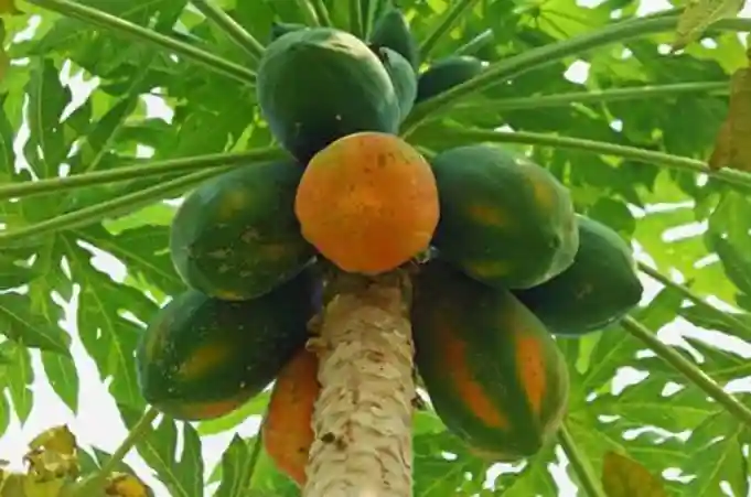 结在树茎上的番木瓜