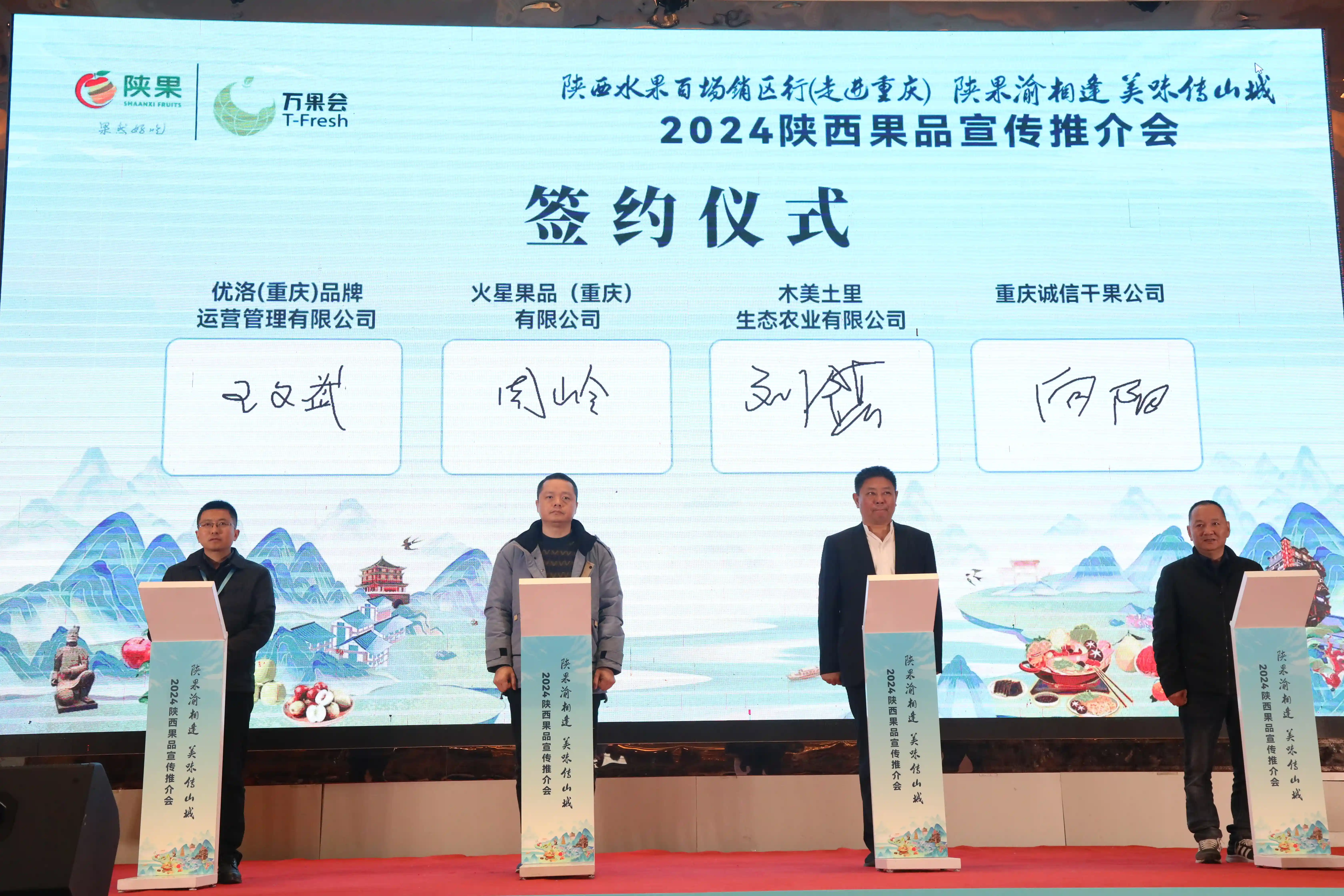 木美土里、百泽异美园、东立果品、姚力果业、二十四洼等5家企业代表推介了各自产品。活动为重庆爱臻多、提丰果品、火星果品等6家优秀经销商授牌,为重庆双福农产品批发市场授予“陕西果品优秀推广市场”牌匾。齐峰果业等4家陕西果业企业与重庆当地经销商等签订了苹果、猕猴桃供销协议,采购金额8800万元。