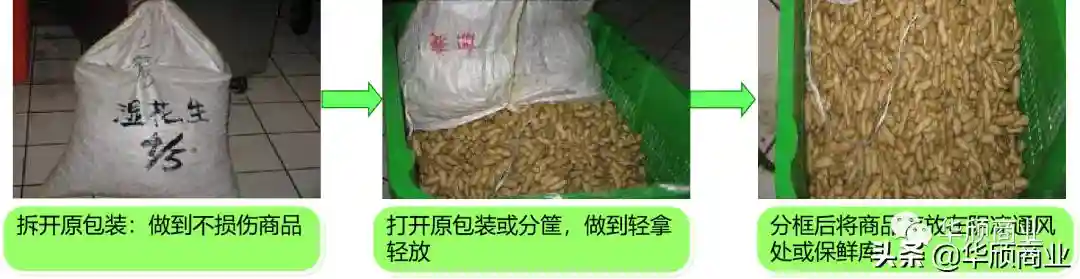 密封在包装箱(袋)中容易自熟、变质的商品需要分框散热,如:湿花生、栗类、李奈类、甜瓜、菠萝、香蕉等;