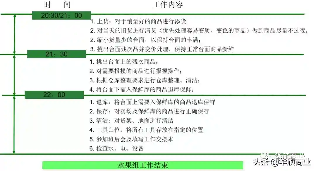 1、高峰期时整理的动作要快,避免影响顾客购物,低峰期时整理要细,以保证台面商品整齐、新鲜;
