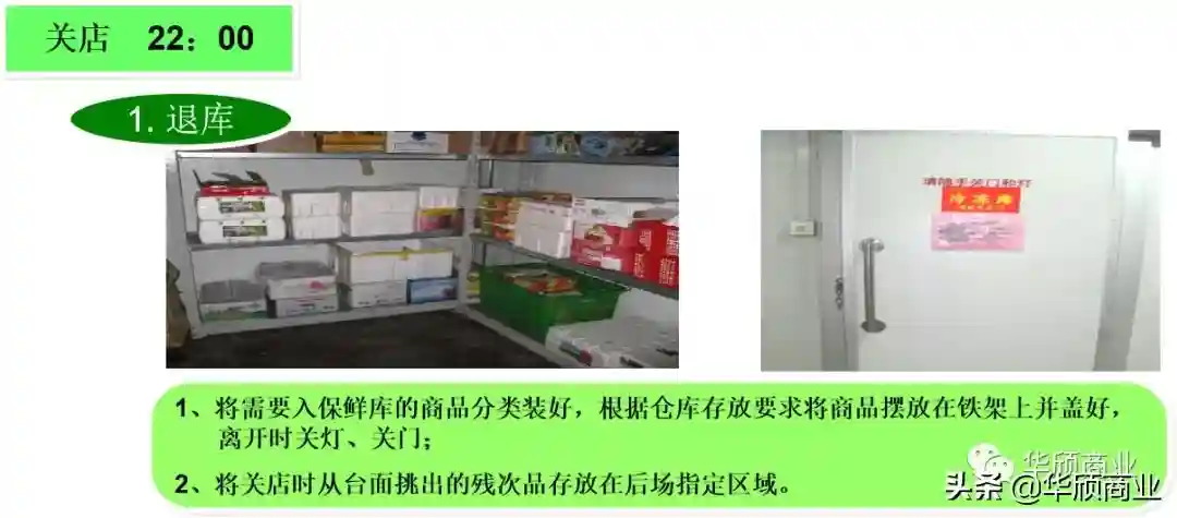 2、堆头或端头的商品可考虑错位存储:将商品存储在附近的台面下,以避免在高峰期时频繁打开挡板添货而影响顾客购买;