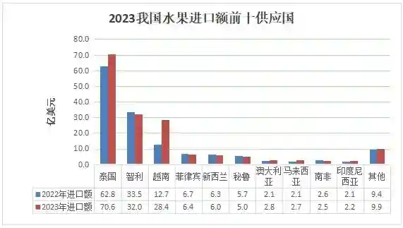 世界道:自从2018年起,我国水果贸易逆差激增,此后不断扩大。根据食土商会水果分会发布的最新统计数据,2023年我国水果进出口双增长,其中进口额超168亿美元,继续保持快速增长态势。