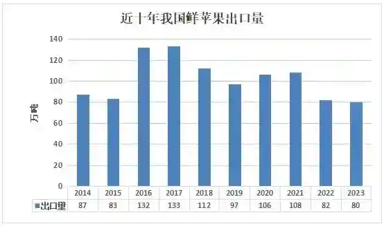 2023年鲜苹果出口9.7亿美元,出口量79.6万吨,同比减少7%和3%。越南、印度尼西亚、泰国、菲律宾、孟加拉国等主要出口市场同比普遍下降。