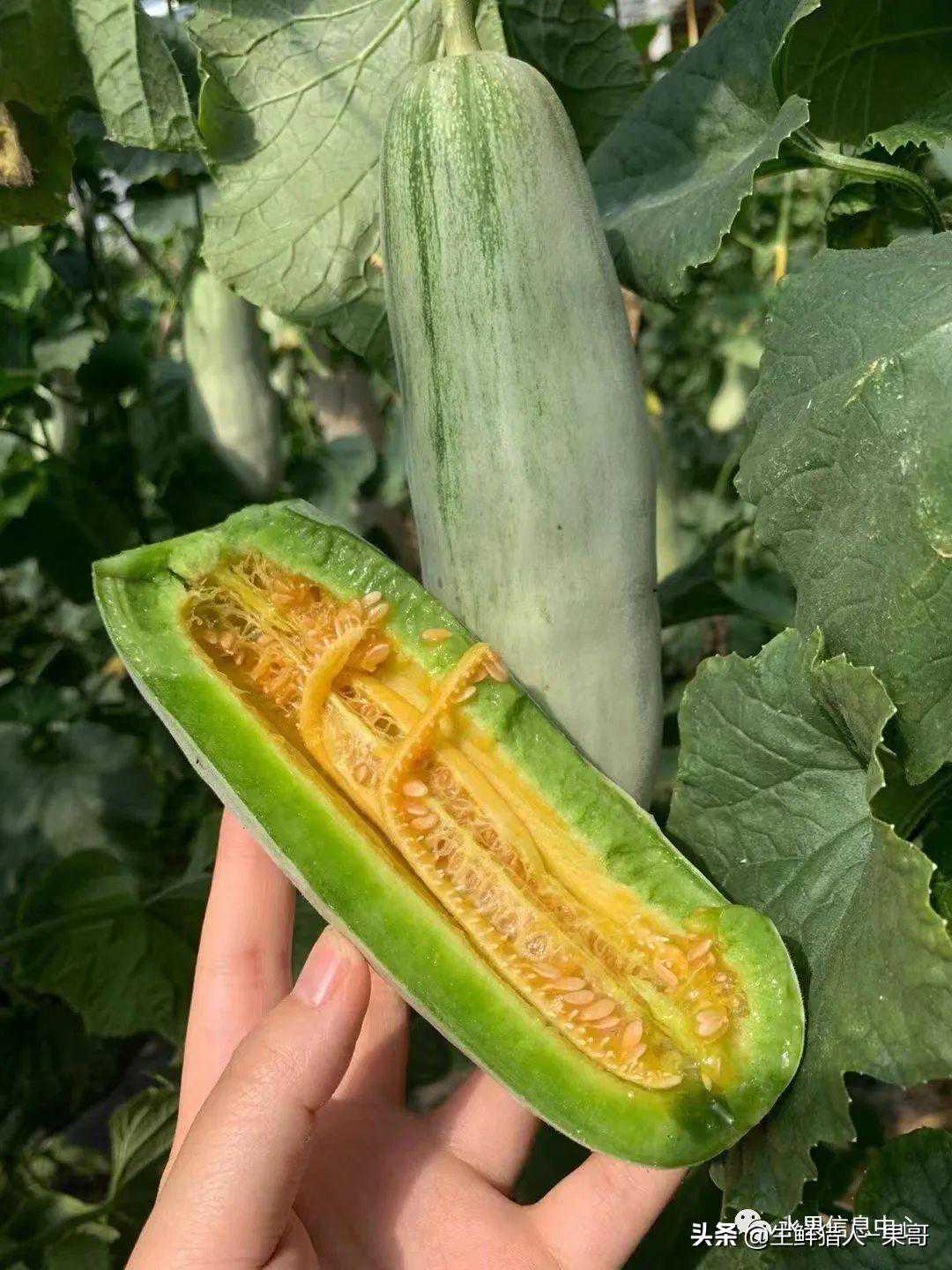 博洋6号:看起来土里土气,但是甜度高,脆甜,成熟后,果皮灰白色及淡绿,瓜瓤桔黄色。