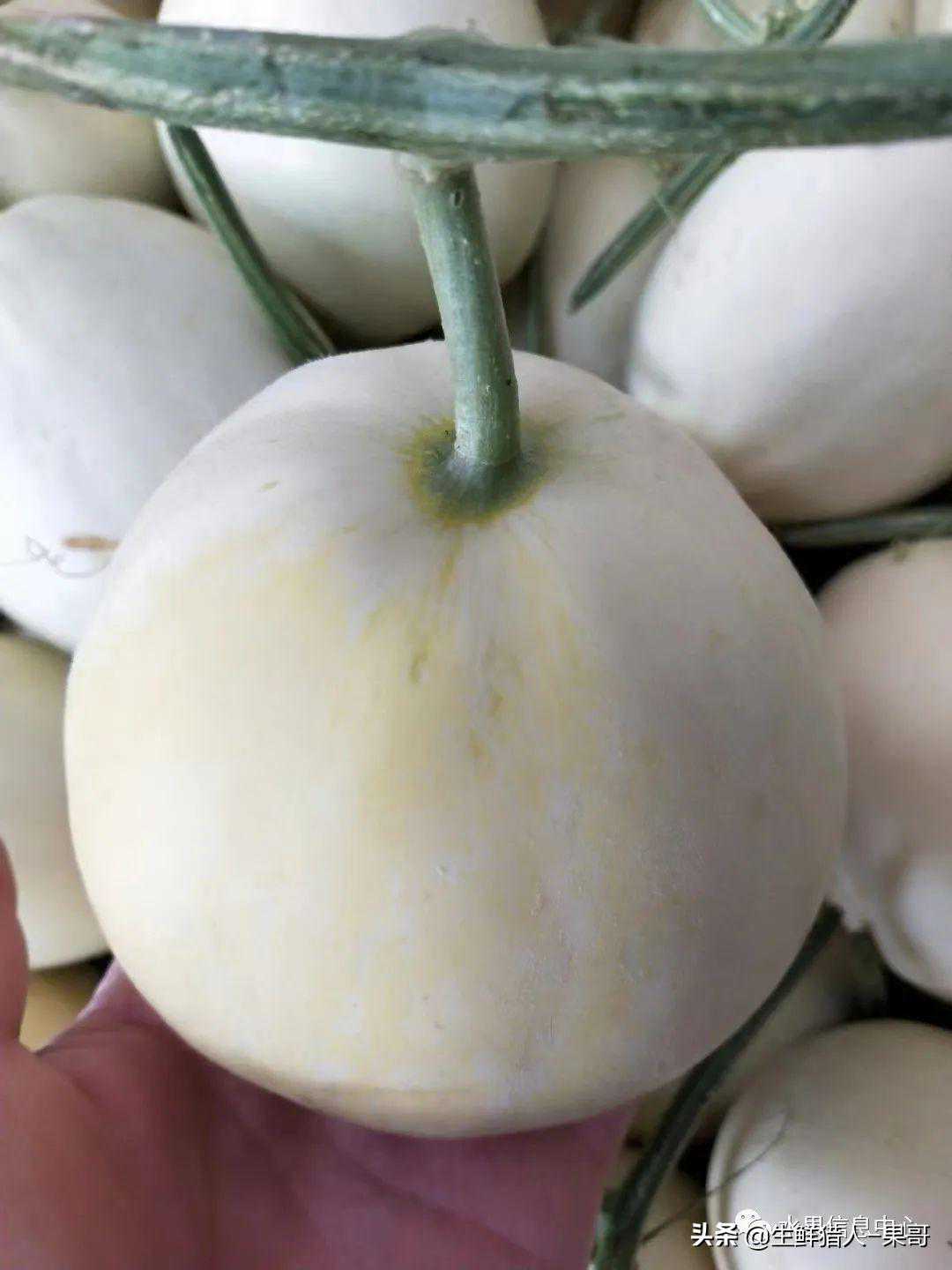 白色恋人:果形正圆,粗网,果皮白,果肉呈黄绿色,糖度高