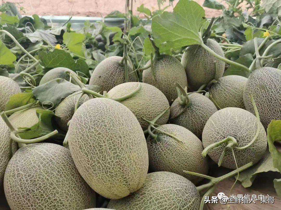 绿宝:果形漂亮、绿皮绿肉、甘甜似蜜、芳香扑鼻,首茬甜瓜成熟时间:5月下旬