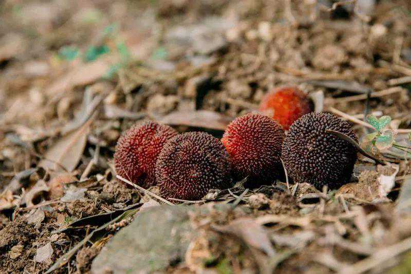 3.鞋子最好要穿深色的运动鞋,掉落的杨梅会把鞋子染成杨梅红色。