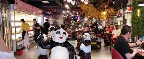 走进这家店,你将被国宝大熊猫迎接。别出心裁的是,大熊猫坐在麻将桌旁,满满的四川风情,显得生动有趣,你甚至还能与大熊猫共坐麻将桌体验一把。