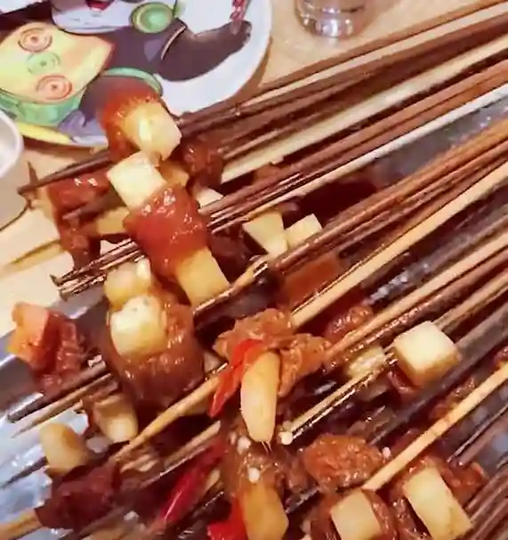 其中一家串串店,不仅在春熙路设有分店,还在宽窄巷子等热门区域开设了分店,着实是一家网红店。每次前去都能看见长长的队伍,生意相当火爆,到得稍晚一些就得排队两小时。