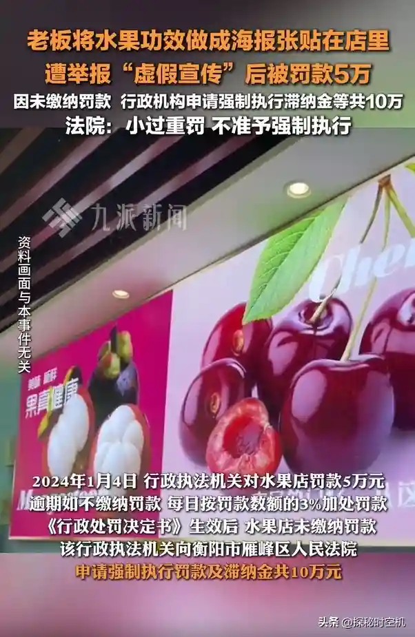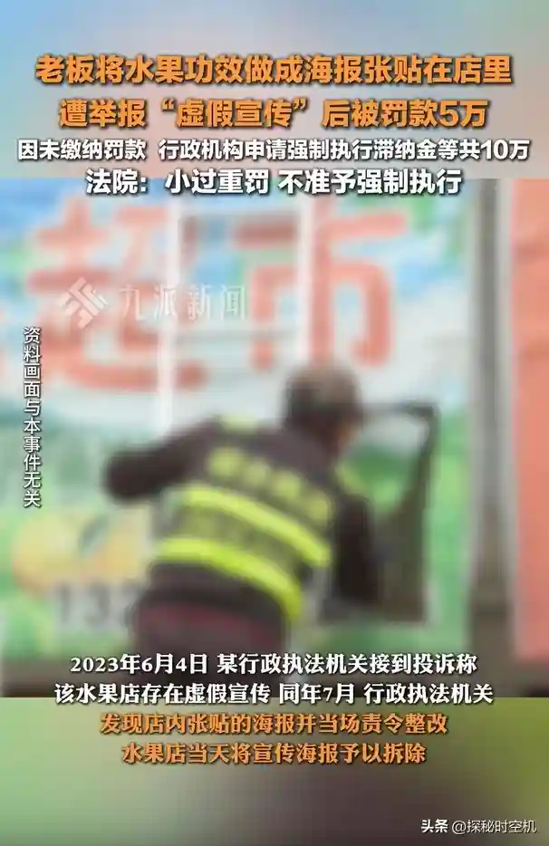 一个小小的水果店,又不是医院诊疗机构,仅仅是在网上搜索了一些水果功效张贴在墙上,就要罚款5万加上滞纳金一共10万?