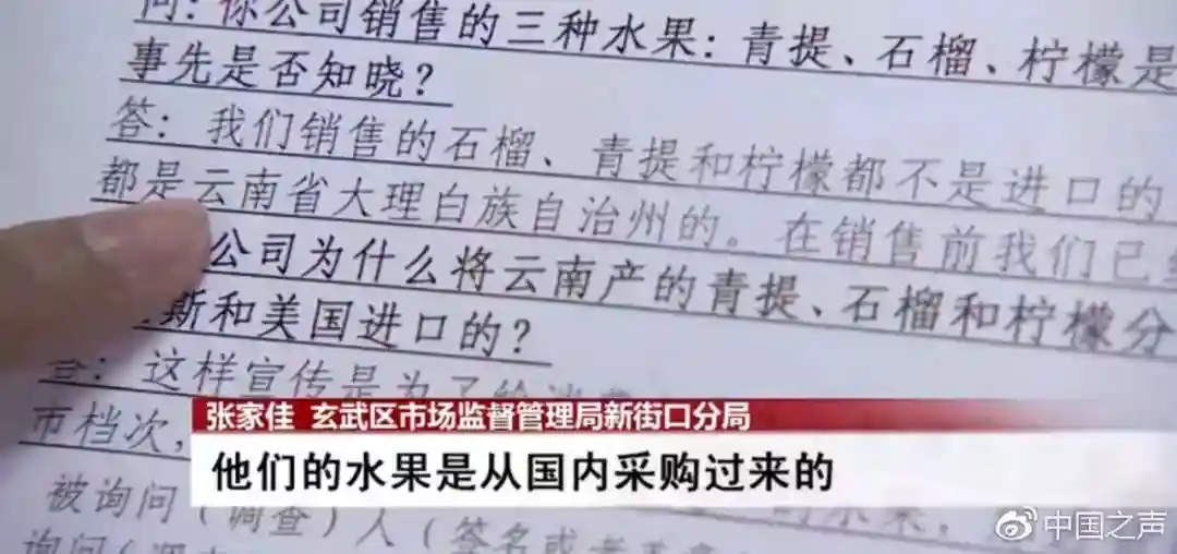 “刚才我们看它虽然有一些日文、英文,但包装盒上的产地就是在国内种植的,只是品种可能是国外品种,这牵涉到可能虚标产地。如果是这种情况,我们会依法进行处罚。”
