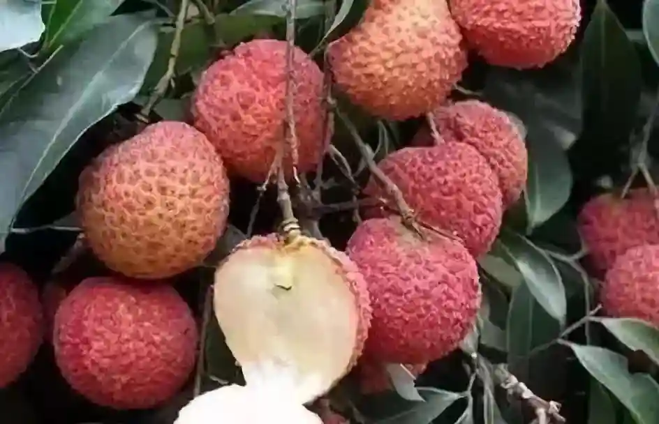 无核荔枝与普通荔枝果树外形看起来并无差异,果实更大,果皮更粗糙,果肉更多,果汁更甜,它成双成对挂果,因此也被人们称为“情侣荔枝”。
