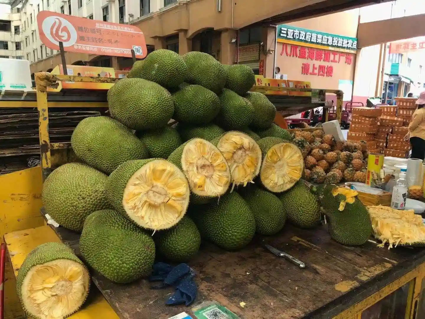 4、菠萝蜜有分切开和整个,切开的大概20斤、整个大概40斤,价格也不一样