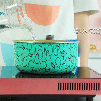 5、将苹果丁、橙子丁、雪梨丁倒入奶锅中。