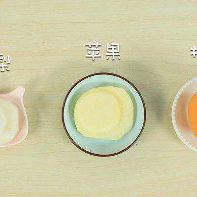1、准备食材:雪梨30克,苹果20克,橙子(取肉30克)。