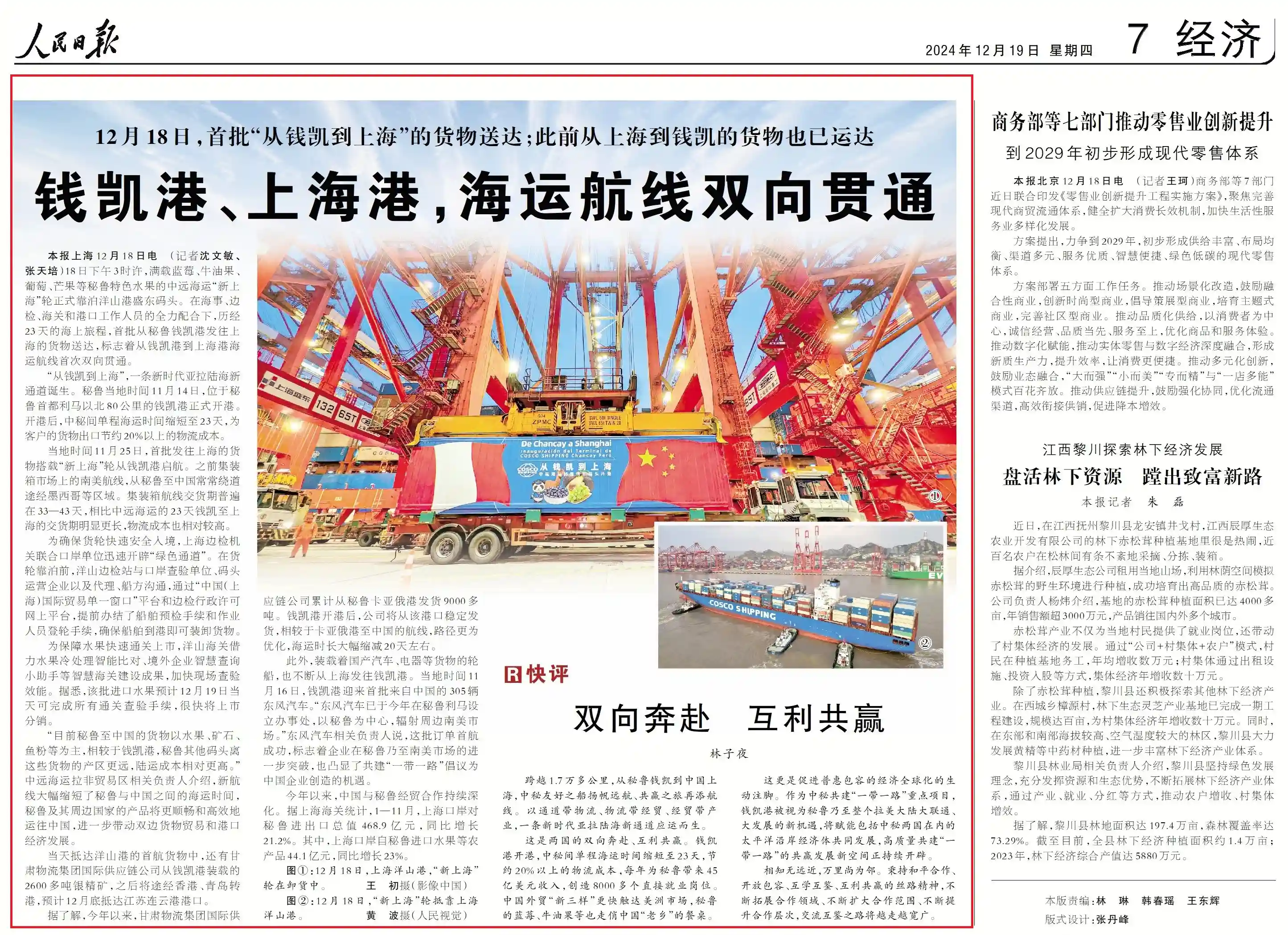 当地时间11月25日,首批发往上海的货物搭载“新上海”轮从钱凯港启航。之前集装箱市场上的南美航线,从秘鲁至中国常常绕道途经墨西哥等区域。集装箱航线交货期普遍在33—43天,相比中远海运的23天钱凯至上海的交货期明显更长,物流成本也相对较高。