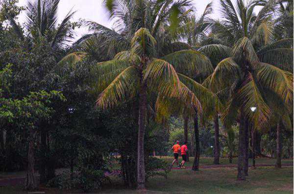 市民在海口市椰子树下夜跑。蒲晓旭摄(新华社)