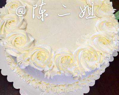 4.裱花袋装好奶油挤出一圈漂亮的玫瑰花,每个玫瑰花之间可以再挤出一个花,最后,底部用同样的花嘴挤出一圈漂亮的小花。