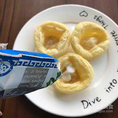 5、在挞皮内加入适量酸奶,不要加太满哦,等下还要放水果呢!