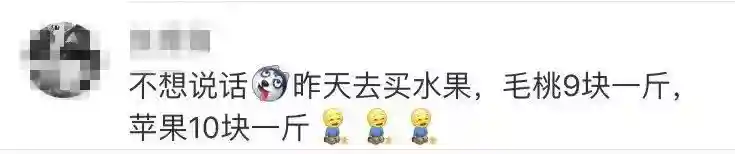 (桃子去年2.5元/斤今年7.9元/斤)、(菠萝去年2—3元/斤今年5元/斤)、(苹果去年6—7元今年8—10元/斤)