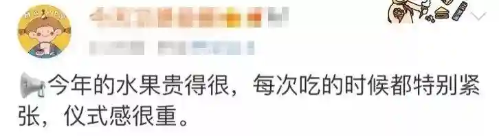 水果好贵,真的吃不起了!以前仅仅只是觉得车厘子贵,现在觉得什么水果都贵得要死,随便买点水果就要两百块!