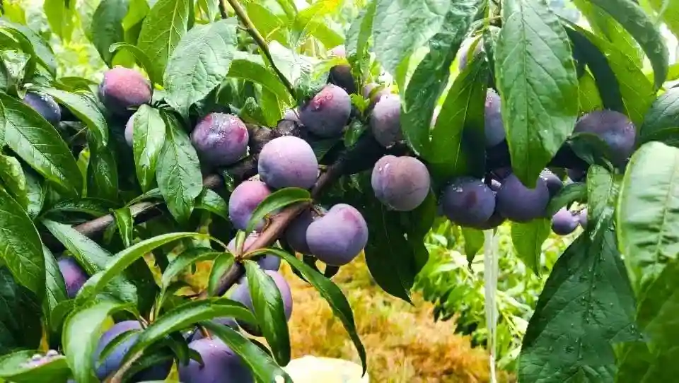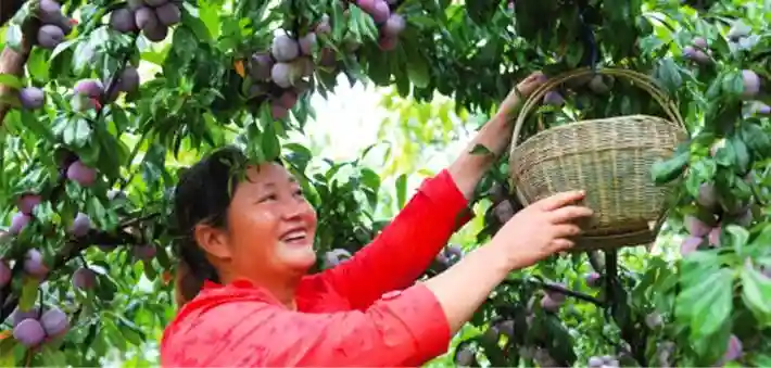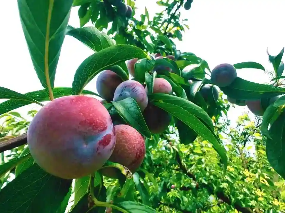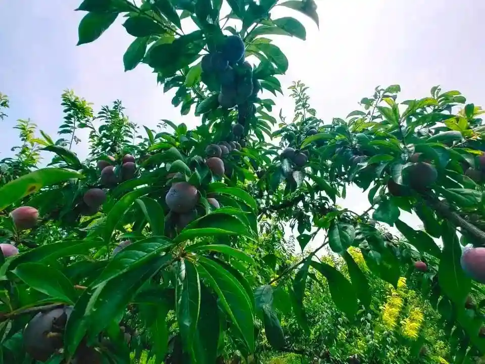 在汉源县乌斯河,树上结满了大小均匀的脆红李,轻轻摘一颗放嘴里,又甜又脆。